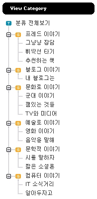 예전에 있었던 감각적인 느낌보다는 조금 세분화시켜서 편성했고 첫번째 카테고리는 모두 길이를 통일시켰으며 하위 카테고리 또한 될 수 있으면 길이를 통일 시키려고 노력했다. 그것이 보는 방향에서 조금 더 편할 것이라는 판단 때문이다. 사실 태터는 Gmail과 같이 체계적인 레이블 관리 시스템을 제공하고 있지 않기 때문에, 막상 저 많은 분류들을 직접… (ㅡㅡ;) 좀 무식한 방법으로 일일이 옮겨줘야 했다. 사실 이 정도 시점에서 이런 무리한 것을 했기 망정이지 조금 더 글이 쌓이고 많아 졌더라면 무척이나 힘들었을 것이다. 최대한 앞으로 새로운 분야에 대한 포스팅시 카테고리 추가 적용에 유리하게 만들었다.