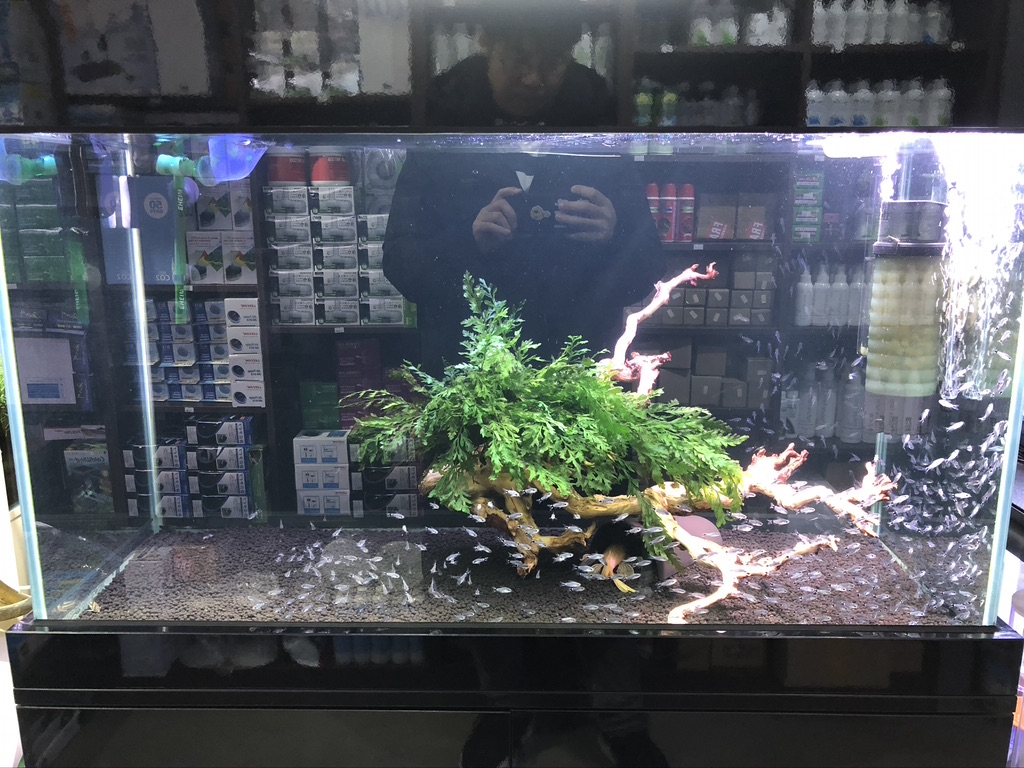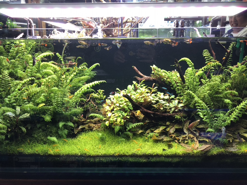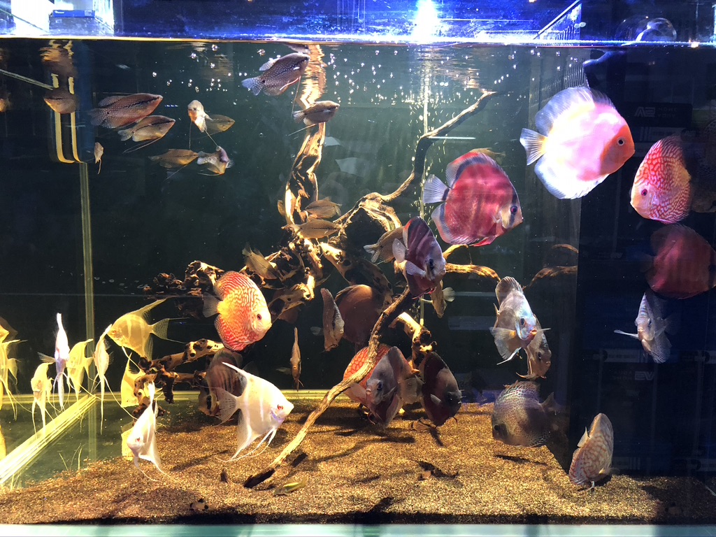 와… 들어가자 마자 보이는 첫번째 어항에 바로 꽂혀 버렸다. 물이 마치 거울 같았는데 그 안에 들어있는 새로운 세상이 너무나도 아름다워 눈을 떼지 못했다. 수초 어항 말고도 하스타투스의 군영, 유목과 디스커스, 다양항 장식의 탱크 어항 등 다채롭게 전시되어 있었다.