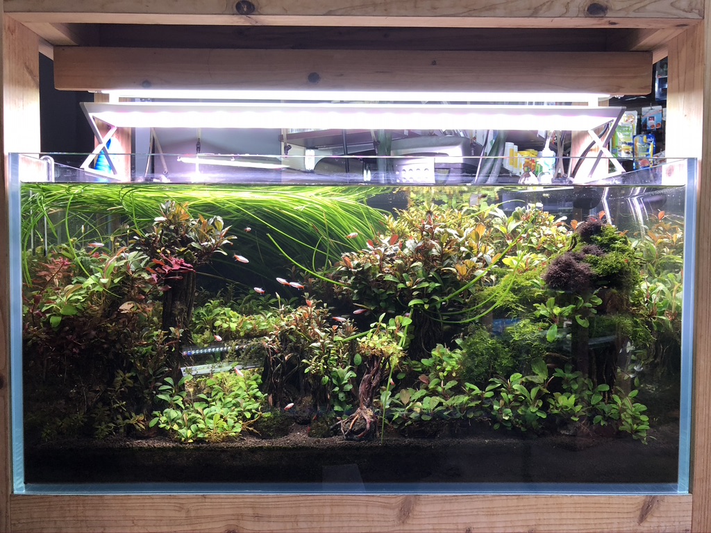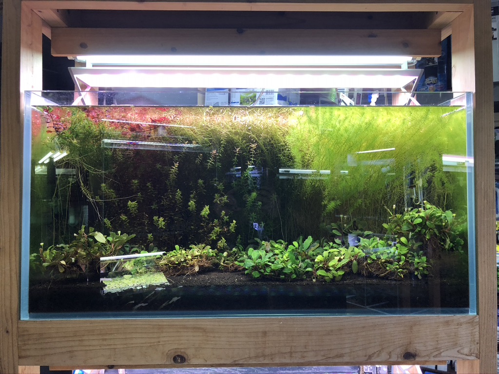 원래 계획했던 수초 어항을 꾸미기로 했고, 어항은 집에 있던 3자 청경 어항을 그대로 재활용 하기로 했다. 전시되어 있던 4자 어항과 원목 받침대가 너무 갖고 싶었지만, 일단 연습부터 하기로 꾹 찾았다.